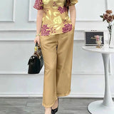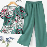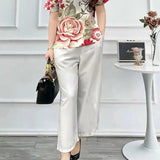 Erweitern Sie Ihre Garderobe mit dem eleganten Sommeranzug von ZahraZen. Dieses Set kombiniert eine Bluse mit kurzem Ärmel und floralem Druck sowie passende Hosen für einen stilvollen Look. Hier sind die Details: