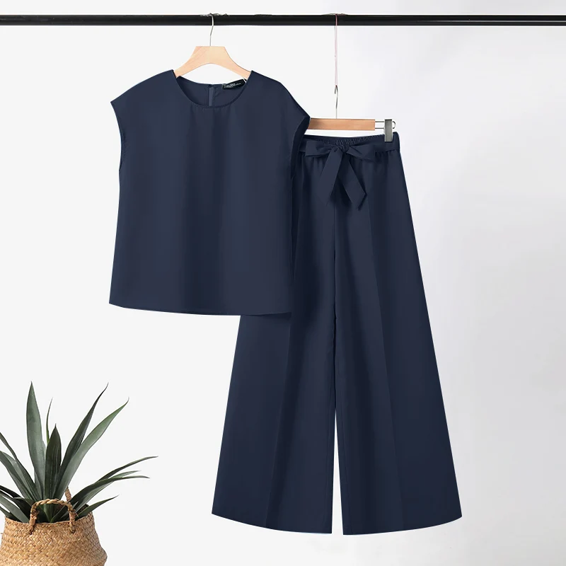Das ZahraZen Sommer-Set Bluse & Weite Hose ist die perfekte Kombination aus Stil und Komfort. Dieses 2-teilige Set besteht aus einer kurzärmeligen Bluse und weit geschnittenen Hosen, die zusammen einen eleganten und lässigen Look schaffen. Ideal für den Büroalltag oder entspannte Freizeitaktivitäten, bietet dieses Set eine lockere Passform und vielseitige Tragemöglichkeiten. Perfekt für modische Frauen, die Komfort und Eleganz schätzen.