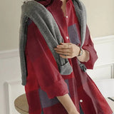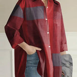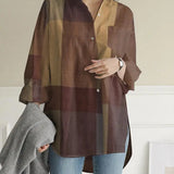 Design: Die Bluse verfügt über ein stilvolles Karomuster, lange Ärmel und einen klassischen Hemdkragen. Die unregelmäßige Länge und der übergroße Schnitt verleihen der Bluse einen modernen, lässigen Look.