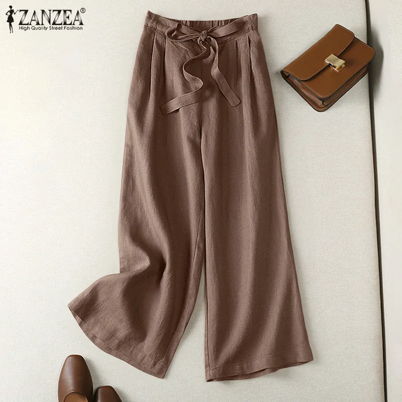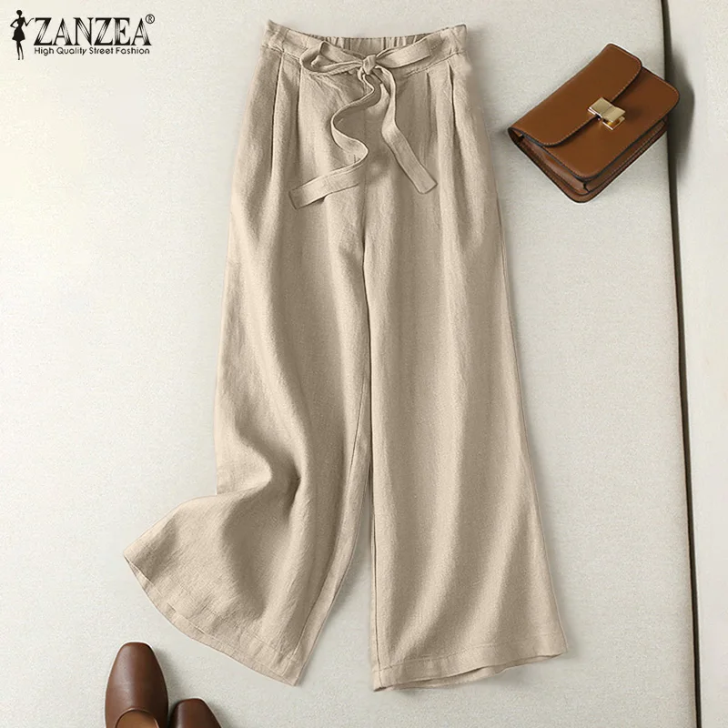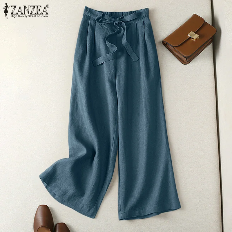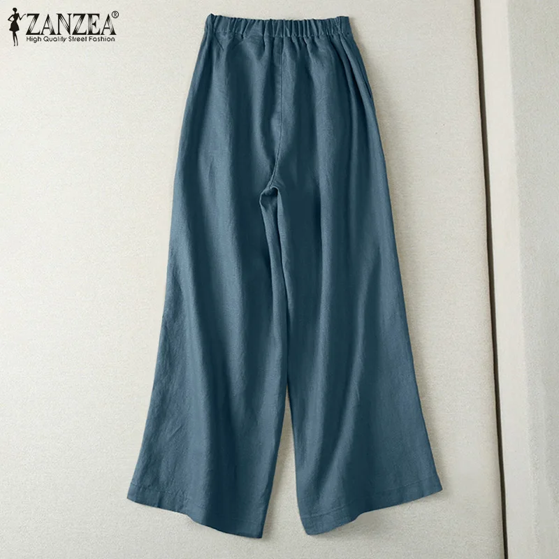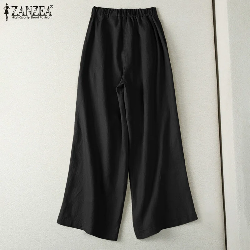ZANZEA 2024 Summer Trousers Women Spring Wide Leg Pants High Waist Wide Leg Pantalon Casual Solid OL Work Palazzo Baggy Capris