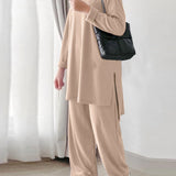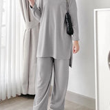 Erfahren Sie den perfekten Mix aus Stil und Komfort mit unserem ZahraZen Mode Muslimischen Set. Dieser 2-teilige lässige Tracksuit besteht aus einer Bluse mit langen Ärmeln und einer lockeren Hose und ist ideal für einen entspannten Look während des Eid Mubarak und darüber hinaus.